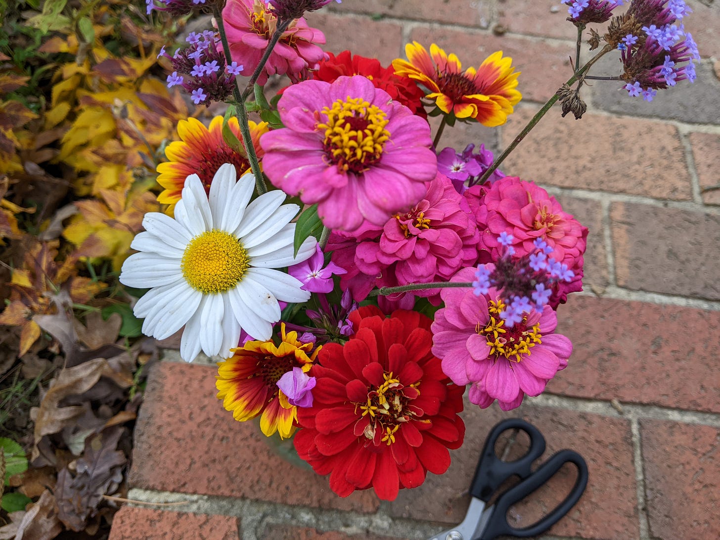 This week, with the first hard freeze predicted, I fretted about how long, dark and lonely this coming winter may be. But then I went outside and made a bouquet from the last of the summer’s flowers. Snipping the remaining zinnias and cosmos with a cold front barrelling in on a northwest wind reminded me that everything in life is a cycle. Brighter days will come again. I just need to get through this.