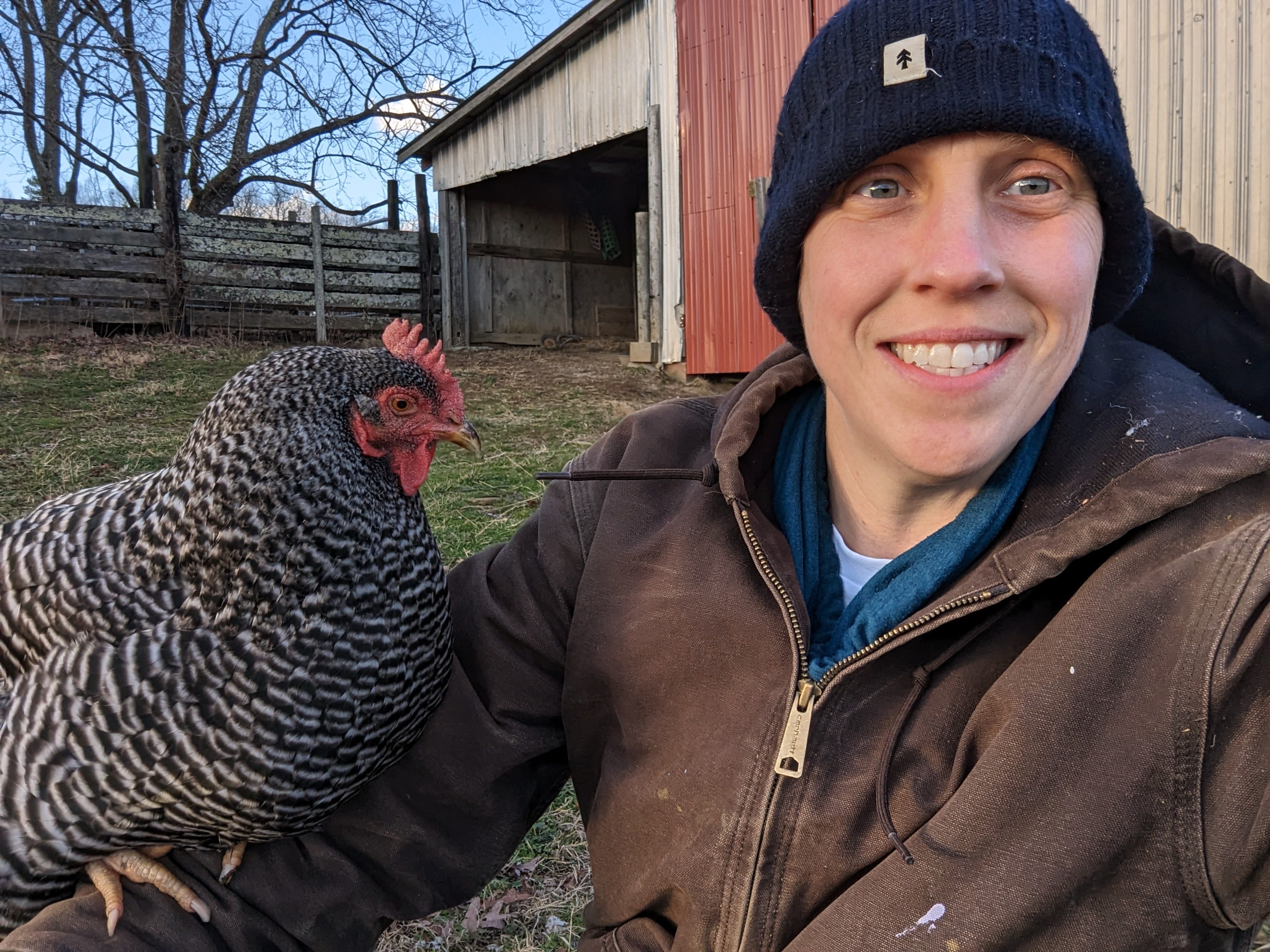 Unfortunately, I have some sad news to share. We lost sweet Ruth Bader Ginsbird to a bobcat attack a few weeks ago. Ruthie was one of the sweetest chickens on the farm. She’d happily jump on the knee (or back) of anyone crouched down close enough to the ground for her to hop up, and loved to pretend to be the world’s chonkiest parrot.