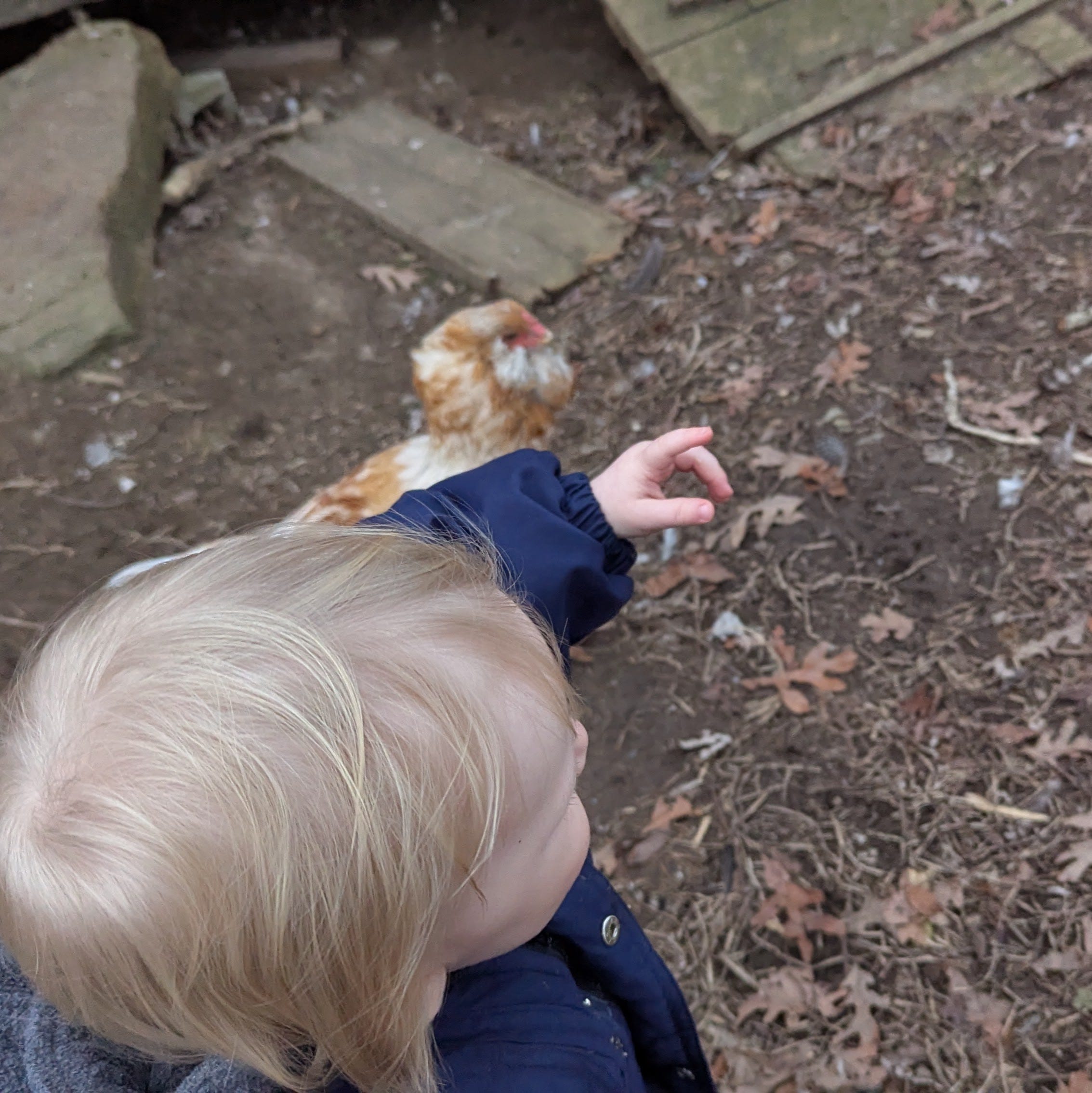 Farm baby now has a handful of words, including Mama, Dada, Papa, and…baba, which very specifically means chickens (and ducks). I guess it shouldn’t surprise me that he’d love chickens at an early age (that whole nature vs. nurture thing), but boy does he enjoy visiting his babas.
