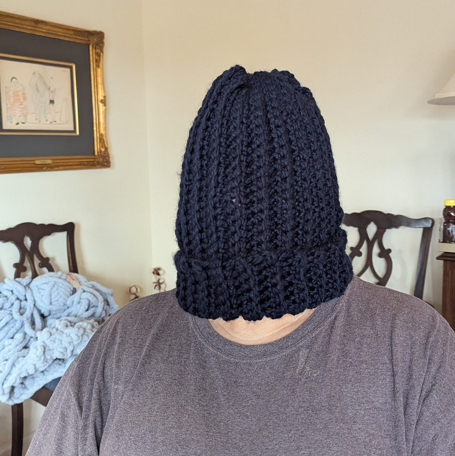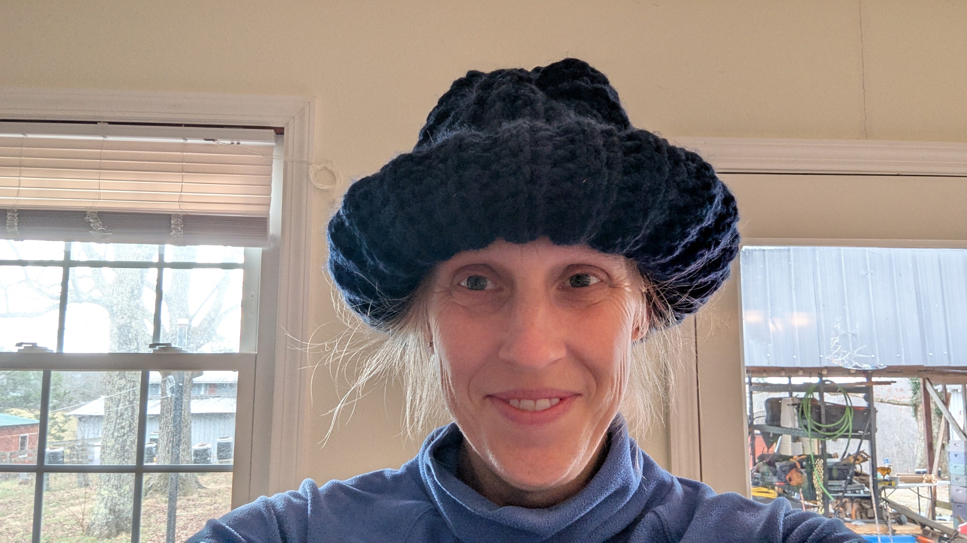 Oh, just fold it up, you say? When you fold it up enough to actually, you know, see out of it, the bottom is so thick it looks like a crocheted sombrero.